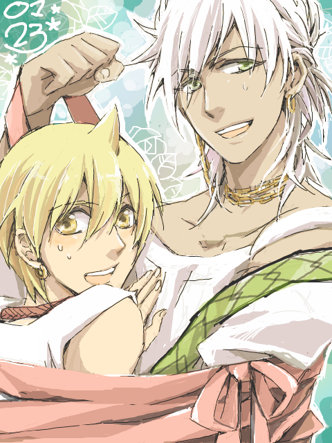 体の向こう側で、さりげなく師匠の腰にまわされてるアリババくんの左手にもドキドキ♪