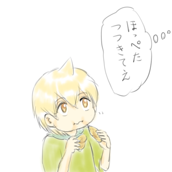 お口にポテチ超詰め込んでる子ババくんって、こんなかなー?思いつつ描き描き。