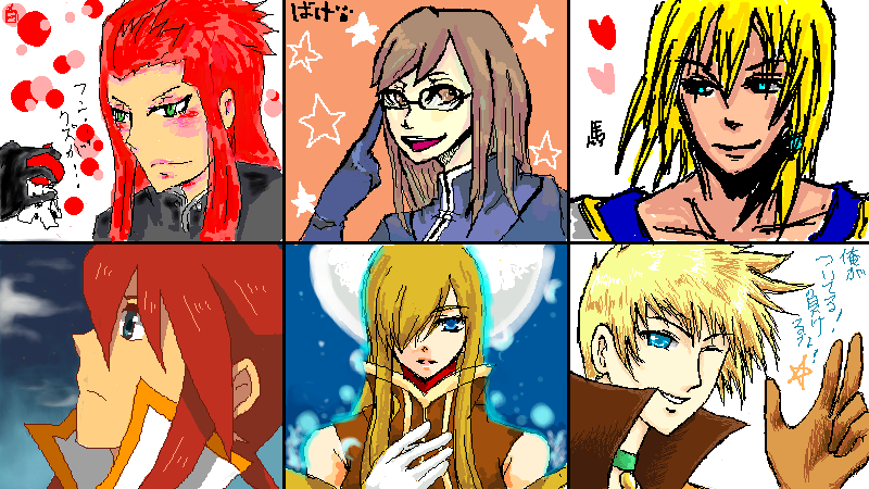 下段左から、いかさまのザギ、ゆきずりさまのフレン、おとめちゃん(とめさま)のルーク、自分のガイ。となっております。