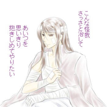 いえもう、SS拝見しているうちに、こんな感じ…うん、だいたいこんな感じ↑の包帯ぐるぐるユーリが浮かんで仕方なくなりましてv