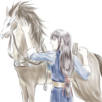 ユーリを馬より手前にするか奥にするか少し考えて…束ねてる髪を描きたくなったので、背中を向けて頂きました笑v