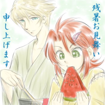 ちまっこルークにジンベイ着せたいがために描いたはずだったのに、スイカ(らしきものv)で隠れてしまってほぼ判りませんね笑!