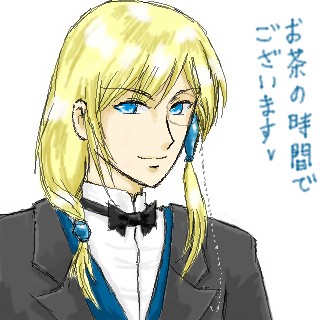 昨夜絵チャにてマウスで描いてみたものの、落書きとは言えやっぱり自分で納得行かなかったし、色も塗ってみたかったので…執事ウパラに再挑戦してみましたよだーりん!!^▽^