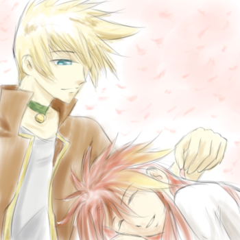 とてもそうは見えないのですが(汗)ガイのお膝で(!)眠る坊ちゃまと、坊ちゃまの髪に降ってきた桜の花弁を反射的に取ってあげてる少年ガイという事で!