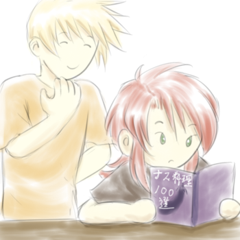 ↑の絵は一応、なすび料理に悩むルークと、あたたかく見守るガイを描いてみました^^