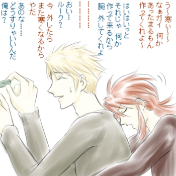 でも生返事じゃなくて普通に返事してるのは、抱きついてるルークの体温を感じてるせいだとv