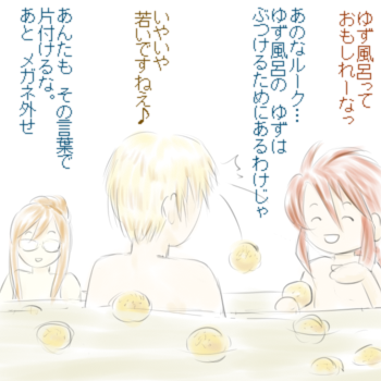 ↑は、アビス男性陣がゆず風呂に入ったらこんな感じかな?という想像図ですv