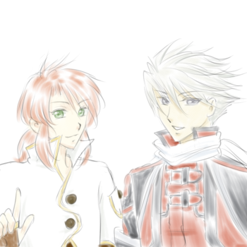 はい、ルークのお隣は、髪型似てますが銀髪のガイでは無くて、OZ主人公のフィールくんです。初挑戦☆