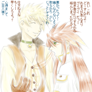 大使は大使で待ってる間、ガイの胸辺りとか首辺りとか直視出来ずにひたすら視線背けてる(でも顔赤い)のも萌だとか、考えてしまいますねvv^▽^