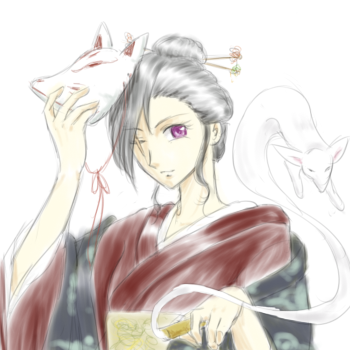 ときふるは人間の芸者で、ぽあっとしてる。 紫色の隻眼で、黒色長髪アップ。灰青色の瑞雲柄の羽織を着、狐面を装備。管狐を連れ、剣術道場によく現れる