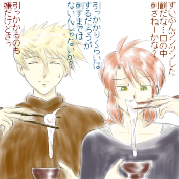 これを↑普通に(?)シンババで描くとすれば、シン様餅はババくんが、ババくん餅はシン様が食べるとちょうどいいのではないかと♪^0^