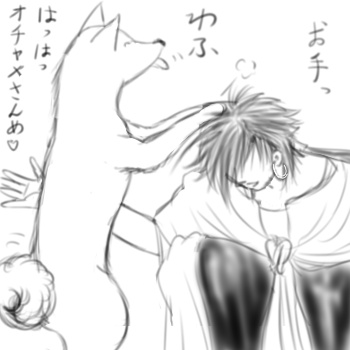 シン様が屈んでいるとはいえ、その頭にお手が出来る程のおっきいわんこって…もうピ/レ/ネ/ー犬ぐらいじゃないかと。^0^;