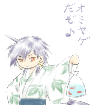 お祭りに行って金魚すくいして帰って来た葉王さまv