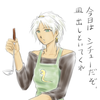 世の男性諸氏は「女性のエプロン姿萌え」かもですが、私はもちろん(?)エプロンが似合う男子も萌え、の事ですよー♪vvvv