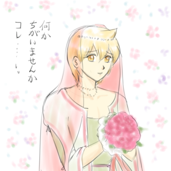 シンドリアの結婚式儀礼も花嫁衣装の構造も、ブーケ持つのかも謎ですが描くの楽しかったです♪^0^