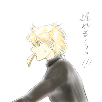 漫画(それも主に少女漫画らしい)で見かける、「パンを咥えたまま登校する」アリババくんですv