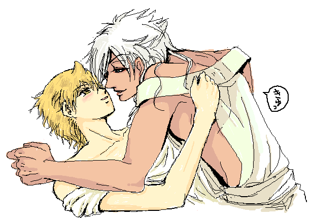 合作するにあたって有り難い事に「何か希望ありますか?」と聞いて下さったので、「アソウさんのシャルとウチのアリババくんで、ちゅー寸前させて下さいv」と遠慮も何もなくお願いしてみた私!
