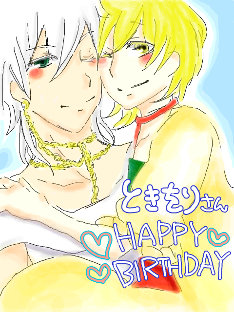なおぽさんの絵は線にも塗りにも優しさが滲み出ていて素敵だなvといつも思いながらstk…ごほほん、拝見してますが、こちらのお祝い絵は全力で描いて下さったとのお話でv