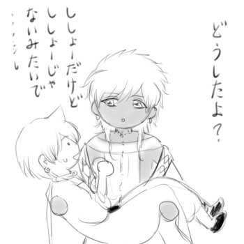 無表情、は難しすぎて結局描けなかったですが↑アリババくんを姫だっこしてる師匠描けて自分では楽しかったです♪
