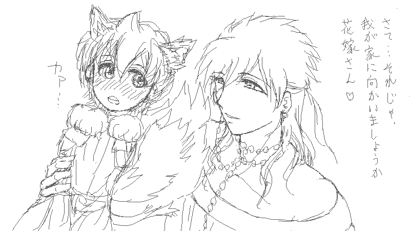 続きに、先日遊んで頂いた、手風呂でお世話になっている(stkしてるの間違いでは)Rikoさんが絵チャ退室なさった後に、ちょっと師匠を描き直しさせて頂いた絵をたたんでますので、Rikoさん、宜しければお持ち帰りになって下さいませ~v(^^ゞ