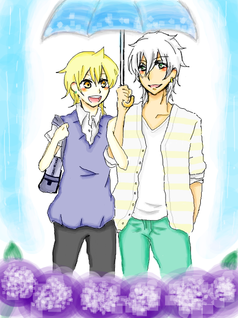 相合傘の現パロシャルアリをvと遠慮も何もなくお願いしたら、こんな素敵な二人を描いて下さいましたvvvvvvvv\(~o~)/