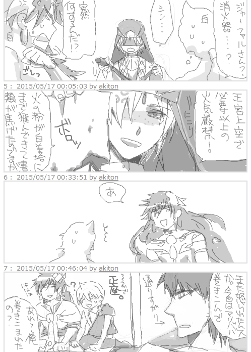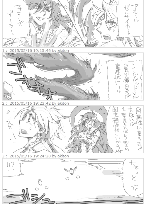 仲よく並んで座ってる2人も、通りすがりでツッコミ入れるマスさんも微笑ましくて、「平和なシンドリア良いなあvv」って、ほのぼのしちゃいます♪\(~o~)/