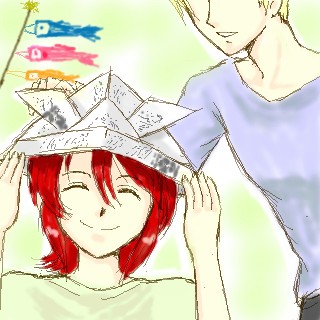 子ルクが被ってるのは、新聞紙で作った兜のつもりです。(^^ゞ