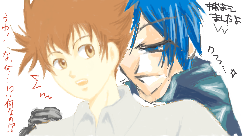 ツナの背後からこっそり近づいて、彼をゲットする骸様という設定…だった筈v(おい