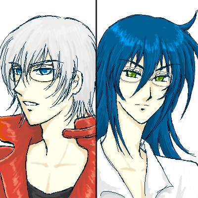 ダンテはライダースーツっぽくを目指して、ディムロスは…あの服に眼鏡は、と思ったものの何も思いつかなかったので普通に開襟シャツっぽく!!工夫が足りないぞ自分。(苦笑)