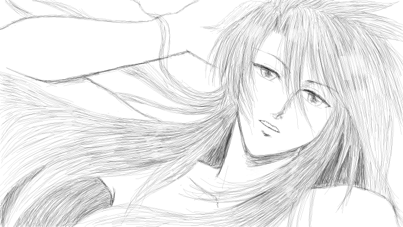 線だけで彼の髪がどこまで表現出来るかなーと思いながら描いてみましたが…