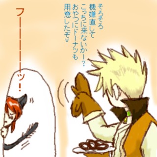 機嫌を損ねてしまったガイ様、食べ物でつろうとしてます何て人!!(描いてるのは誰だ