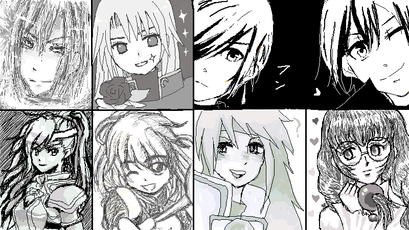 絵チャ新ヴァージョンには容量制限があるので、それに対抗するべくモノトーンで描こうという事になりました~。