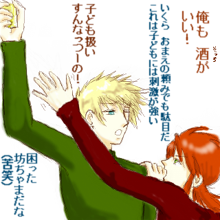 好奇心旺盛ルークがお酒に興味を持って、ガイに飲ませろとねだってみたりv