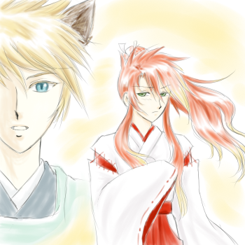 お稲荷ガイと巫女さんルークでっすv(^^ゞ
