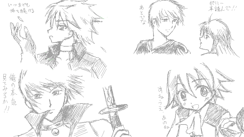時間の都合と自動全消しの恐怖への対応策として、ザクザク線画で描こうと言う事になりました。