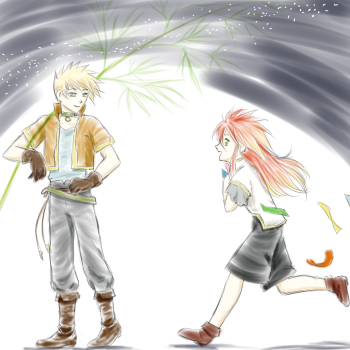 絵は、笹をセッティングに向かう少年ガイと、短冊を腕いっぱいに抱えた子ルクですv