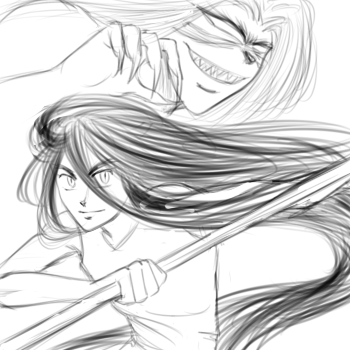 例によって例のごとく、うたた寝が過ぎたばっかりに今日の絵もモノクロにせざるを得なかったお莫迦な私…。;