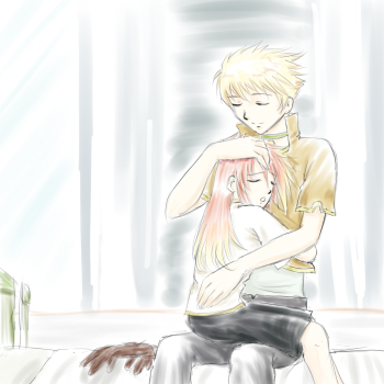 お話の後を更に勝手に想像して、部屋に戻って来てもまだ離れないと言うか、泣き疲れてガイにしがみついたまま眠ってしまった子ルクと、眠ってしまっても頭を撫でてあやし続けている少年ガイ…のつもりです。(^^ゞ
