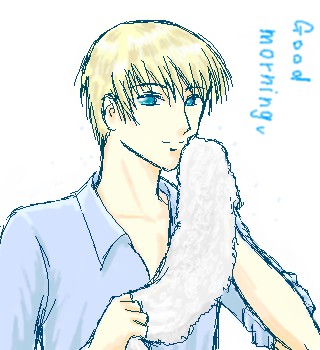 絵は一応バトンに合わせて(かどうかアヤシイ)朝の洗顔後のガイを描いてみました~。