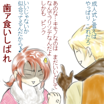 鏡開きの方では何も思いつかなかったのですけど、成人式で思いついたネタがこれ↑だったので描いてしまいました…!